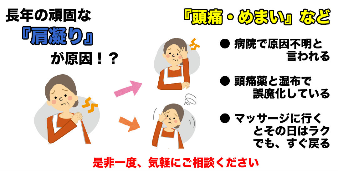 岡山市の50代の方で、肩の痛みや首に不安を抱えている方はいらっしゃいませんか? 2019/10/16 岡山市の50代の方で、肩の痛みや首に不安を抱えている方はいらっしゃいませんか? 〇 20代・30代からずっと肩の痛みに悩まされて 〇 原因不明と言われた頭痛・めまい 〇 痛みのせいで、何もしたくない。 などの、辛い毎日を過ごされている方はいらっしゃいませんか? しっかりと『症状の原因』を見つけて施術すれば、今より良くなる可能性は十分にありますよ。 一緒に頑張ってみませんか?是非一度、気軽にご相談ください。