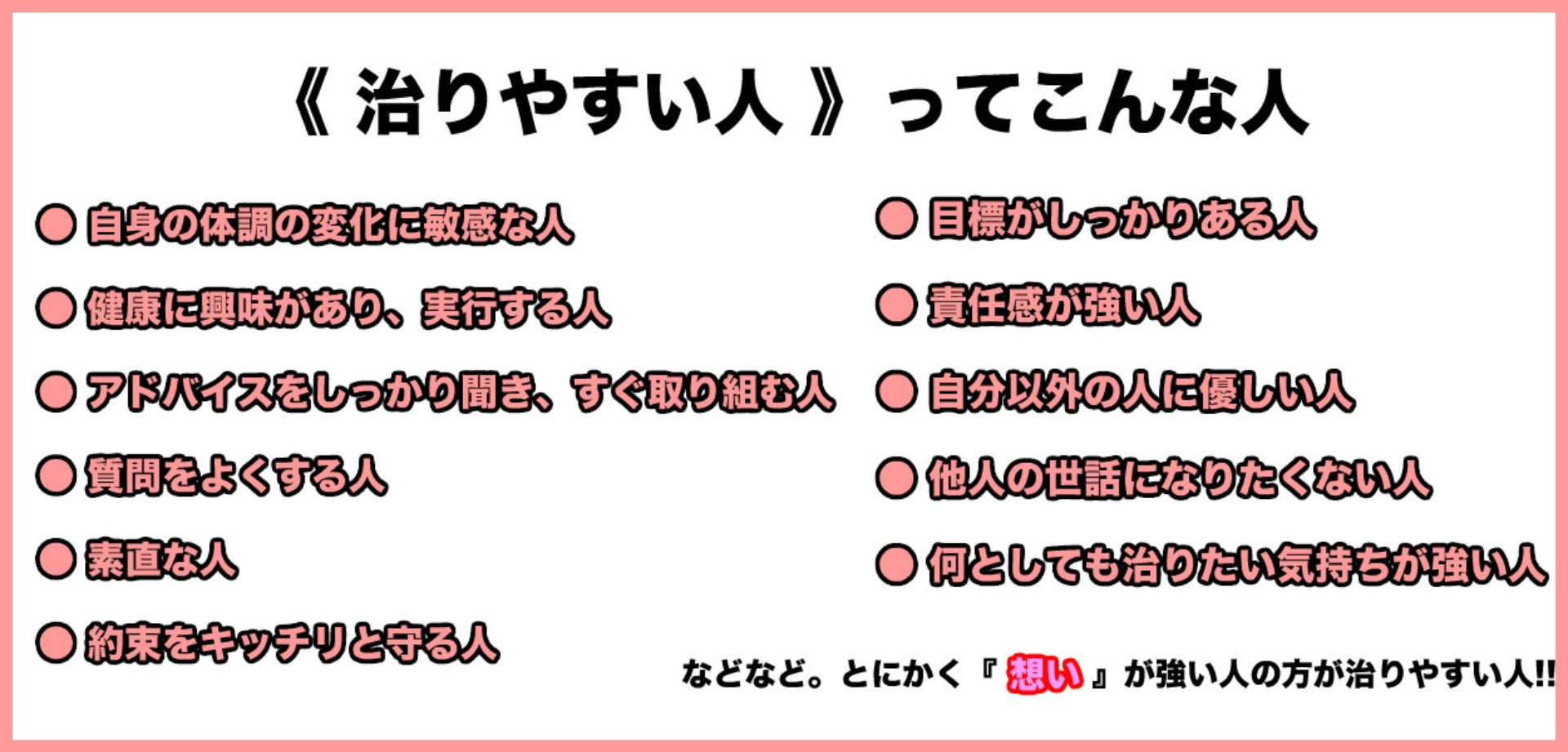 私は、接骨業界に約20年身を置いてきました。その20年という月日の中で、どんな人が治りやすい人で、どんな人治りにくい人なのか?が初診の時点で判断できるようになりました。