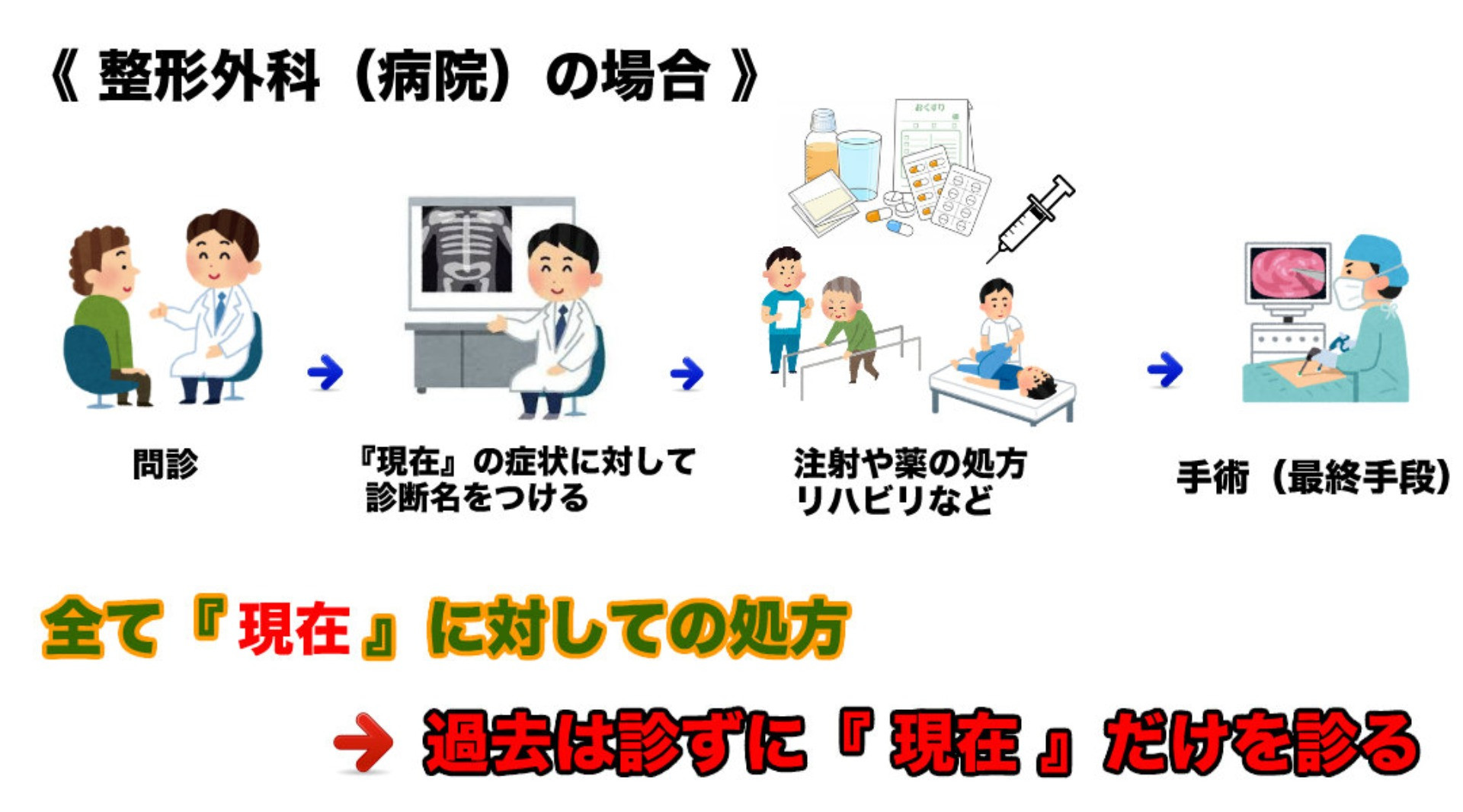 当院は、今(現在)の症状だけでは無く、過去(症状を作った原因)に対してアプローチしています。